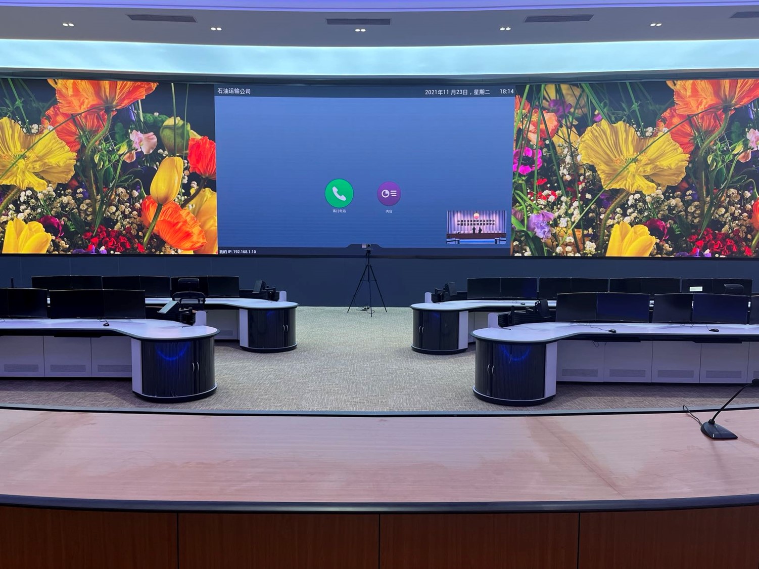 中國石油集團(tuán)安全環(huán)保技術(shù)研究院1層視頻會(huì)議室創(chuàng)新型的運(yùn)用0.93mmLED顯示屏,不僅滿足單位召開視頻會(huì)議室使用,同時(shí)可用于超高分圖像的展示工具,對(duì)研究院研發(fā)團(tuán)隊(duì)成果展示、實(shí)驗(yàn)過程分析提供保障。同時(shí)對(duì)現(xiàn)有視頻會(huì)議功能進(jìn)行升級(jí),由原來模擬、標(biāo)清視頻會(huì)議形式升級(jí)為高清、4K會(huì)議,